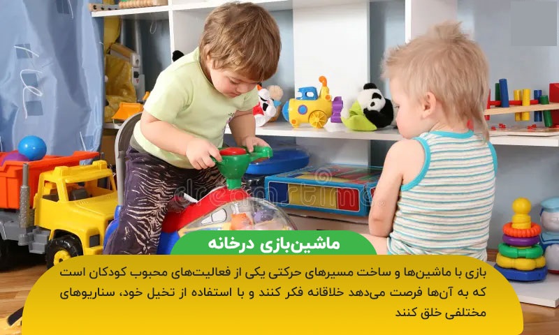 بازی با ماشینهای کوچک و طراحی مسیرهای حرکتی برای آنها، تخیل و مهارتهای حرکتی کودک را تقویت میکند. این بازیها به کودک کمک میکنند تا با مفهوم حرکت، مسیر و حتی قوانین ساده علت و معلول آشنا شود.