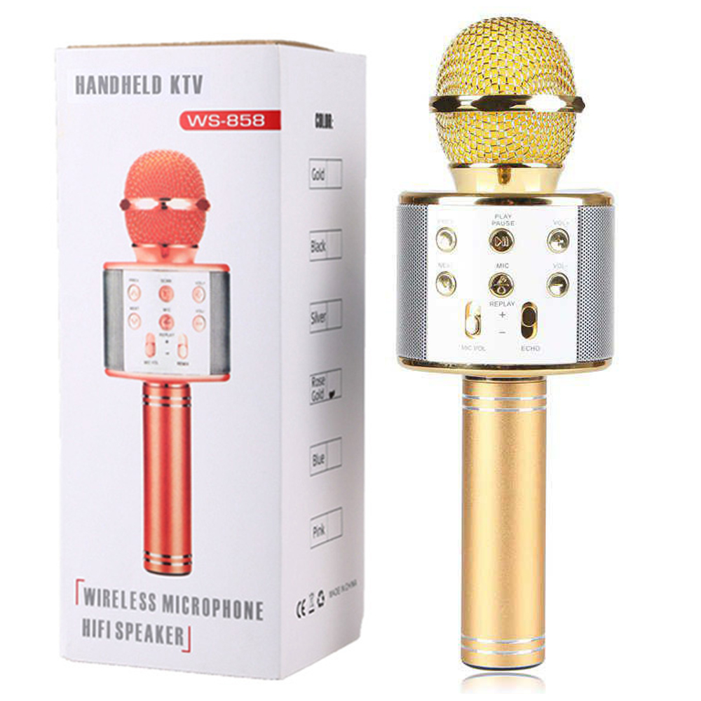 میکروفون اسپیکر مدل ws-858 یک اسپیکر شارژی بلوتوثی است. که دارای پورت رم و یک پورت usb است .