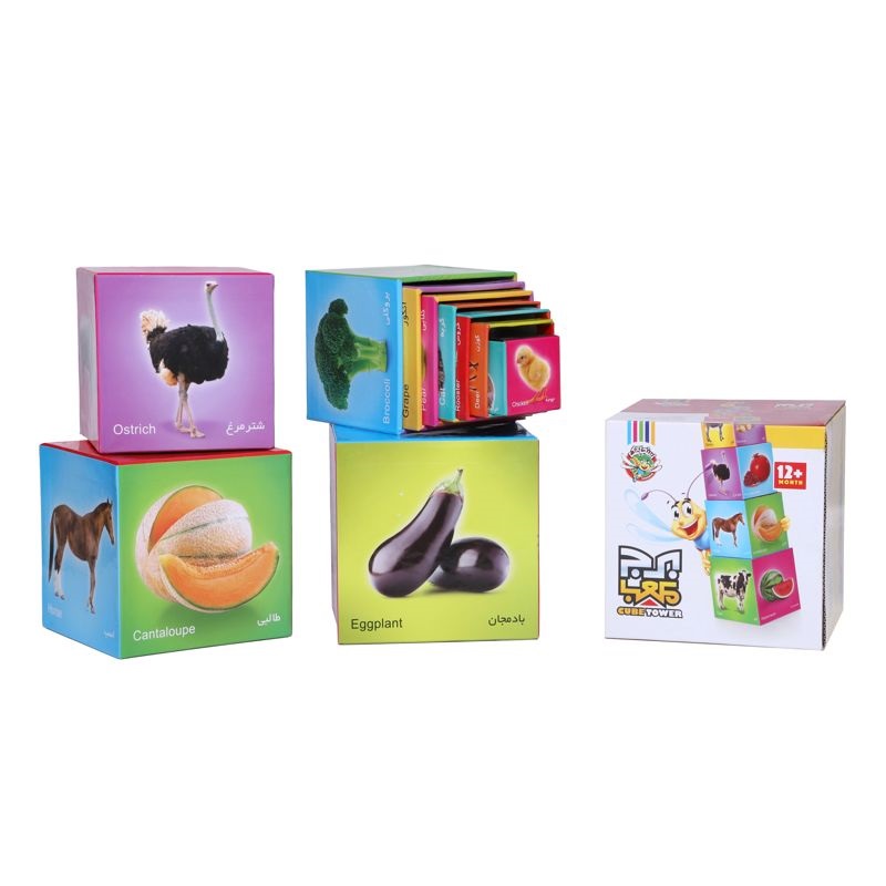 برج مکعب یک بازی آموزشی عالی برای سنین ۱.۵ تا ۴ سال هستش، جنسش مقوا ضخیم هست که در حد پلاستیک مقاومت داره، تصاویر حیوانات میوه ها و رنگ ها در ۵ وجه مکعب ها قرار دارد که می توانید به کودک آموزش بدهید. با قرار دادن مکعب ها به ترتیب اندازه بروی یکدیگر یک برج بلندتر از قد خود کودک ساخته میشه. شما با همراهی کودکتون در این بازی آموزشی ساعت ها سرگرمی خنده و آموزش را تجربه می کنید.