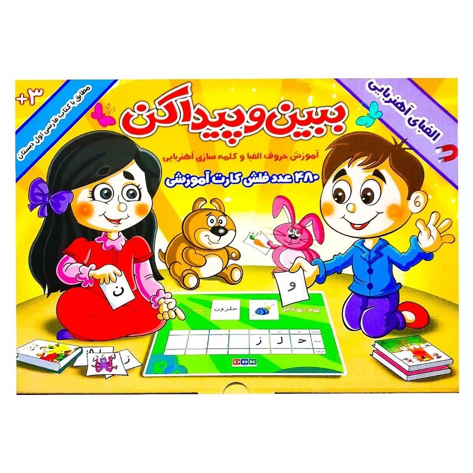 بازی ببین و پیدا کن یک ابزار آموزشی تعاملی است که به کودکان کمک میکند بازی کلمه سازی با حروف الفبا را تجربه کنند و مهارتهای کلمه سازی با حروف را به شیوهای سرگرمکننده و آموزشی یاد بگیرند. این محصول شامل ۴۸۰ فلش کارت آموزشی است که کاملاً با کتابفارسی اول دبستان هماهنگ است. با این کارتها، کودکان میتوانند حروف فارسی را به راحتی ترکیب کرده و کلمات جدید بسازند.