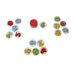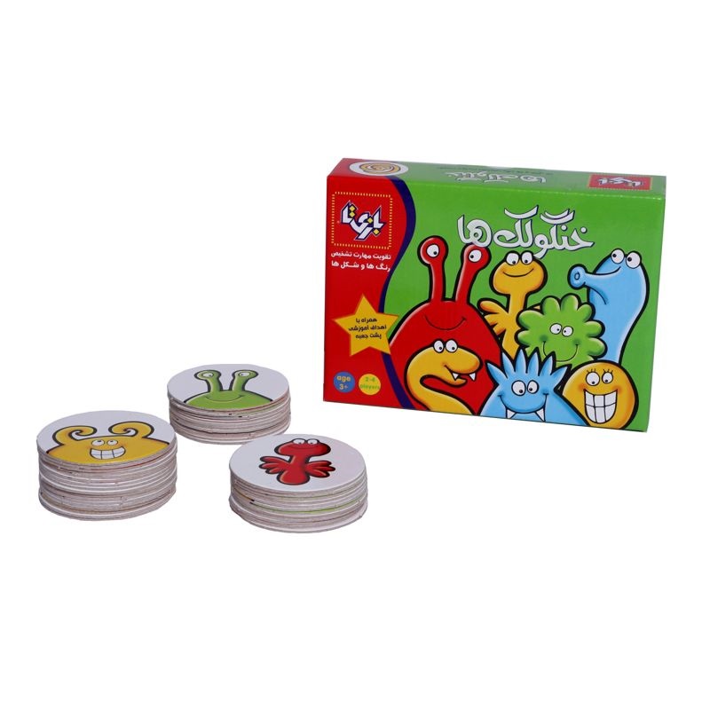 محتویات بازی: ۴۰ عدد پولک مقوایی: شامل شخصیتهای کارتونی مختلف در چهار رنگ.