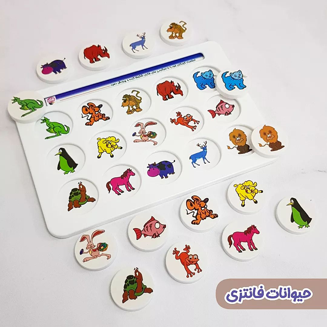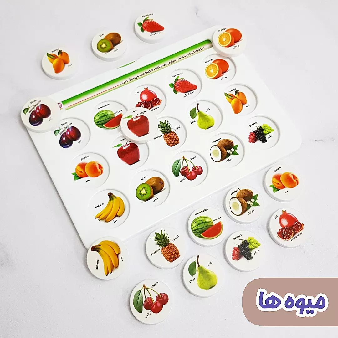 اهداف آموزشی: زبان آموزشی با آموزش نام حیوانات, میوه ها و رنگ ها, افزایش قدرت تطابق و حل مساله, تقویت حافظهی تصویری