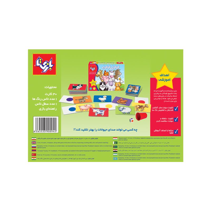 ۳. بازیکن باید حدس بزند که پشت کارت همرنگ با تاس، تصویر کدام حیوان قرار دارد و صدای آن حیوان را تقلید کند.
