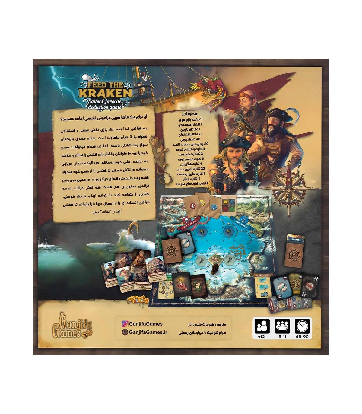 بازی کراکن برگردانی از بازی معتبر خارجی Feed The Kraken به کراکن غذا بده از بهترین بازی های مافیایی و نقش مخفی دنیا در بازی کراکن ، هر بازیکن به صورت مخفیانه یک نقش از بین ملوان، دزد دریایی یا رهبر فرقه را دریافت می کند و از تمام ابزارهای موجود برای ترسیم مسیر کشتی به سمت مقصد جناح خود استفاده می کند.