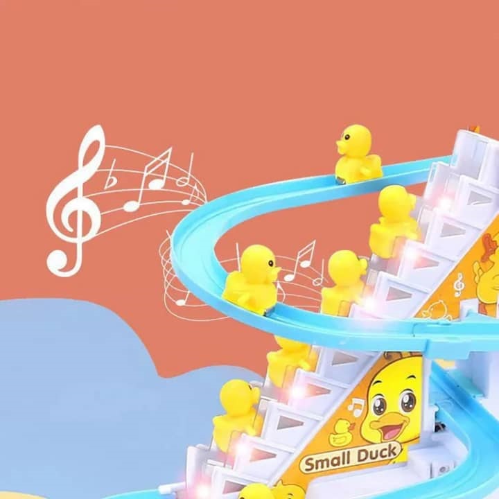 اسباب بازی پله اردک یک اسباببازی موزیکال جذاب است که حس شادی و نشاط را به کودکان هدیه میدهد. این اسباببازی دارای جوجههای زردرنگ بامزه است که به صورت اتوماتیک از پله بالا میروند و به وسیله سرسره، دوباره به پایین میآیند. انجام این عملیات توسط جوجه اردک تا حدی جالب است که همه را محو تماشای خود میکند. این اسباببازی کیفیت بینظیری دارد و میتواند تا سالها توسط کودکان مورد استفاده قرار بگیرد.